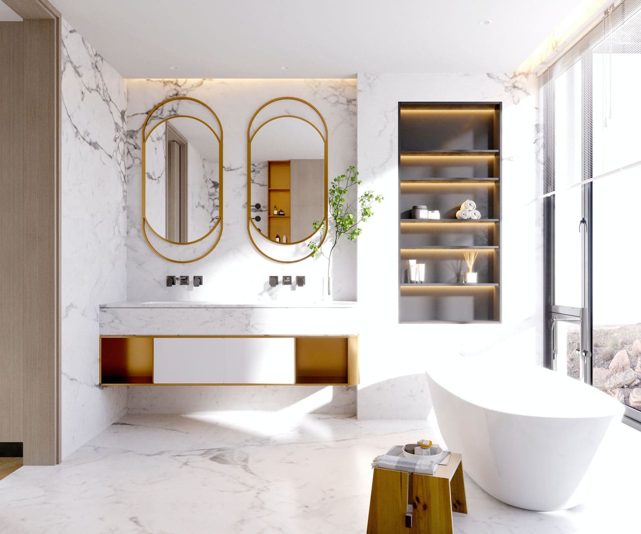 Another upgrade that can make a bathroom look more spacious is recessed storage. These types of shelves are affordable and easy to install. They offer more counter space for decor and everyday essentials. You can also make recessed shelves yourself and save money. The added storage space in your bathroom can help you organize your bathroom and make the entire room more spacious.