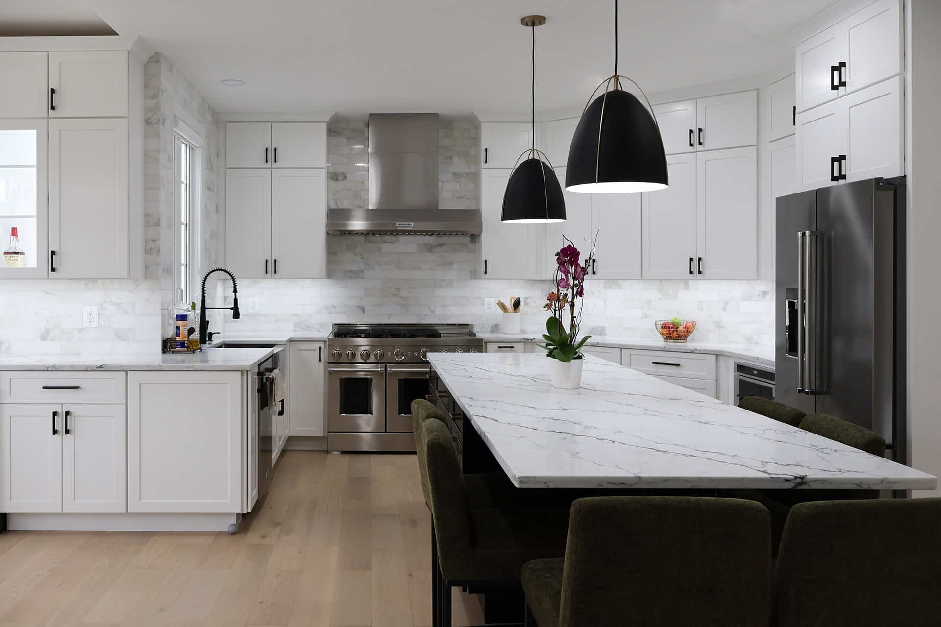 Envision a quartz countertop paired with white Shaker cabinetry. Add matte hardware, and you have a gorgeous neutral palette that feels refined. This combination works for both transitional and traditional homes.