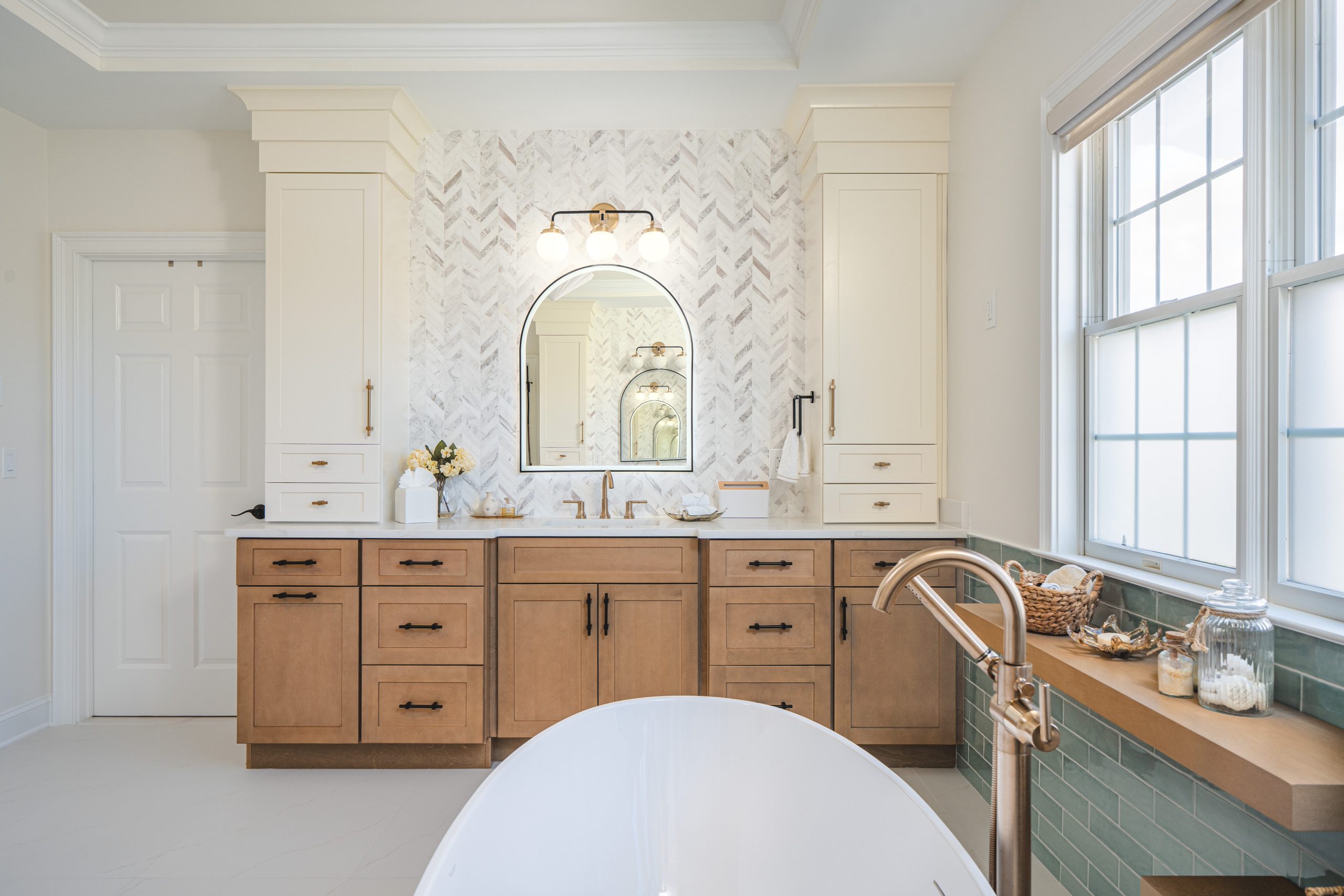 Whether traditional Colonials or newer townhouses, the organic aesthetic fits a variety of styles. Wood-front vanities are a highly popular design feature.